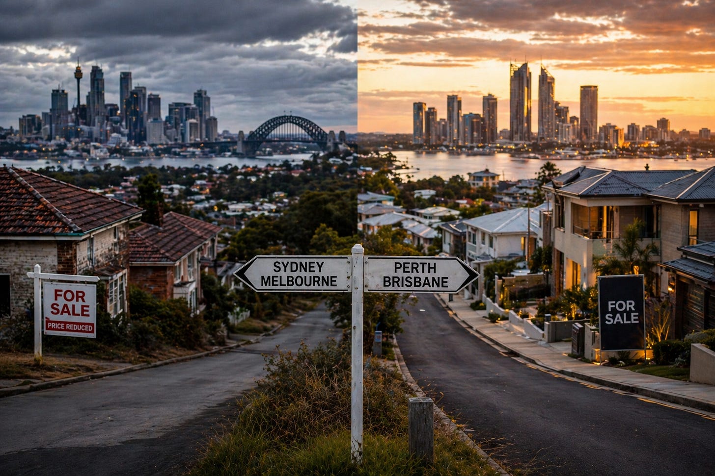 Sydney and Melbourne are losing momentum, Perth and Brisbane are still running, investors are freezing before the budget, and even “safe” wealth moves look different when supply, tax and demographics